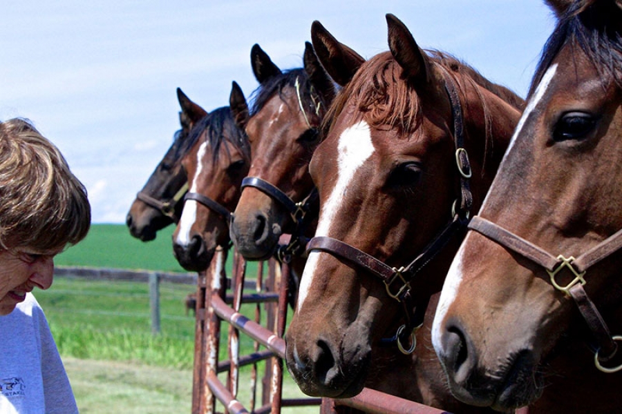 Along with Angus cattle, Gerald and Tina always had horses, and daughter Amie ran barrels and was a competitor in the Canadian Finals Rodeo in 1985 and son Boe calf roped and competed in High School Rodeos. The couple also owned, raced and raised a number of Thoroughbreds, and both have a passion for the sport, and a love of broodmares and babies. After both children graduated, Gerald and Tina decided to take another kind of a leap of faith and they had a dispersal of their cattle operation and jumped into Thoroughbreds full time.