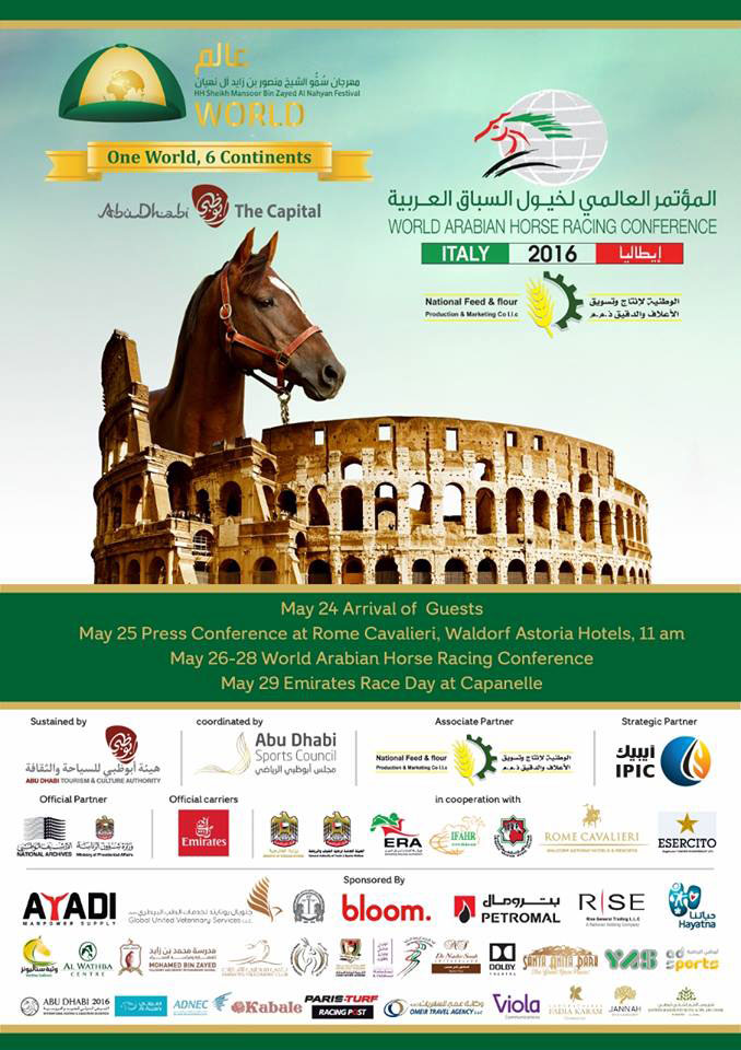 The highlight of the conference will be the races at Capannelle, sponsored by Emirates. With three Arabian races on the card for the Amateur Ladies Jockeys, Apprentice Jockeys and a Stakes for Purebred Arabians, it will be an interesting day for all of the attendees. We’re wishing Brandon a safe trip and look forward to hearing more about his time in Rome!