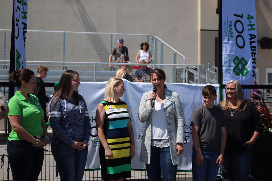 HRA backstretch co-ordinator, Teresa Sealy, was on hand for the announcement. “I grew up in 4-H in Manitoba,” she told me. “A lot of what is taught in 4-H is something that is part of the curricula for students in the groom school program at Olds College. In fact, we’ve got two 4-H graduates graduating from the groom school program this spring. And I’m pleased to see that three current 4-H members are working with Standardbred yearlings getting them ready for the Alberta Standardbred yearling sale to be held in Olds on Sept. 10th.”