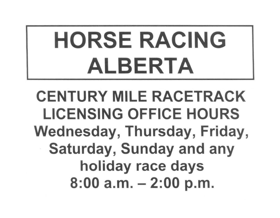CENTURY MILE RACETRACK LICENSING OFFICE HOURS