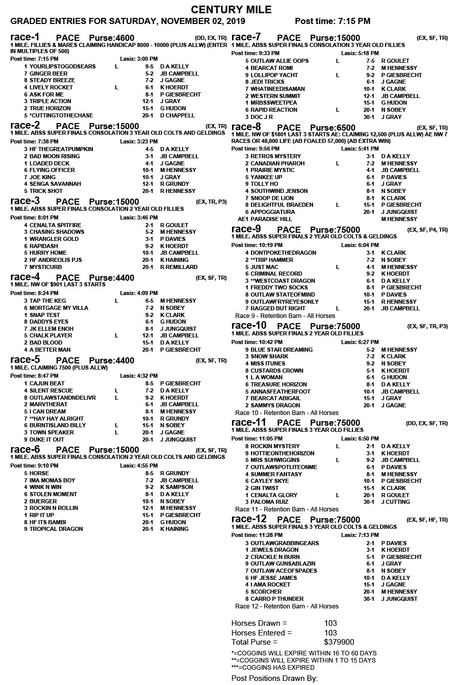 Standardbred Canada Trackit, ASHA and Century Mile Racetrack and Casino have graciously supplied a free pdf race program download for races 9 through 12 for Saturday night's championship races.