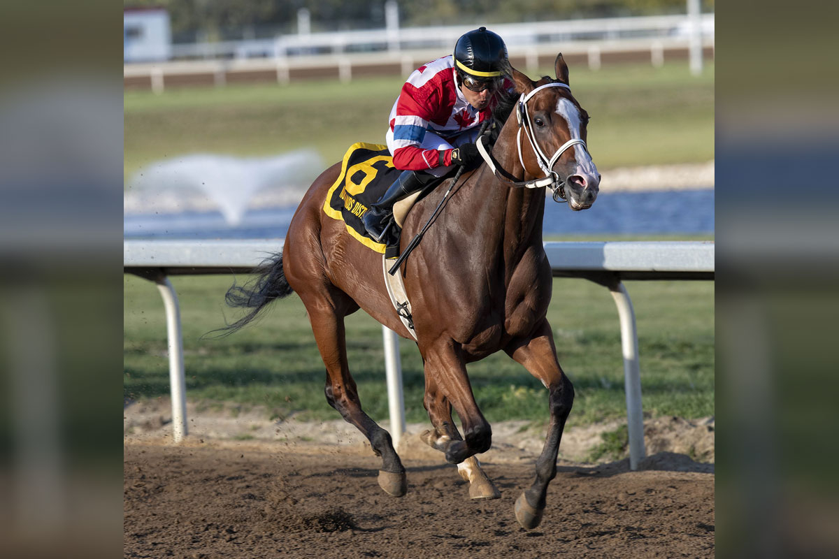 Co-owned by Edmonton Oiler forward Ryan Nugent-Hopkins, Infinite Patience was the easiest of winners. Placed to the outside of Here's Hannah during the early running, Infinite Patience took off entering the final turn and was untouched by jockey Antonio Reyes as she rambled down the stretch winning by a most comfortable two and a half lengths. "He just niggled the lines at her to get her to switch leads and that was about it," said trainer Barbara Heads.