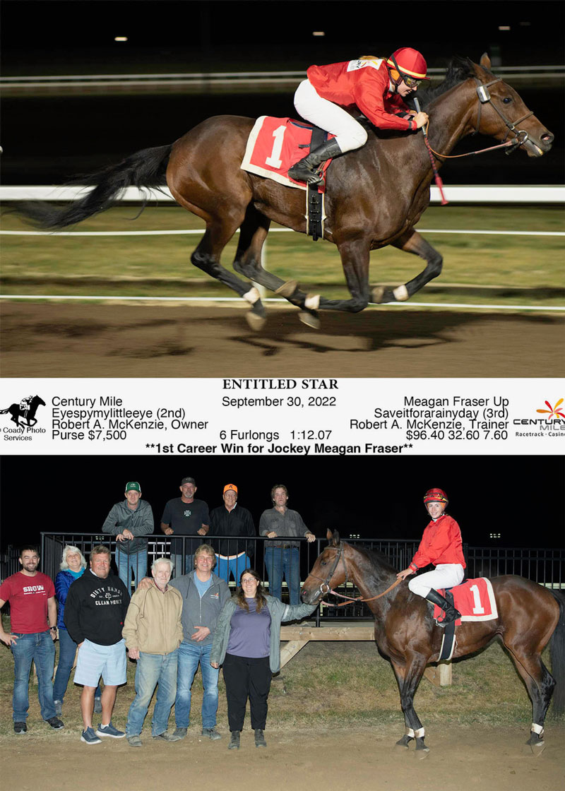 But Fraser, born and raised in Edmonton and now living in Alberta Beach which means an hour’s drive back and forth to the track, saw to it that Entitled Star got off to a good - not great - beginning. “Right before they let us out she slammed her butt into the back of the gate,” said Fraser. “But when I didn’t freak out she calmed right down. She knew I wasn’t going to get mad at her. She stayed cool and stayed with it. Red told me to get her away from the gate and then to stay on the rail. He was confident that she would run well,” said Fraser.