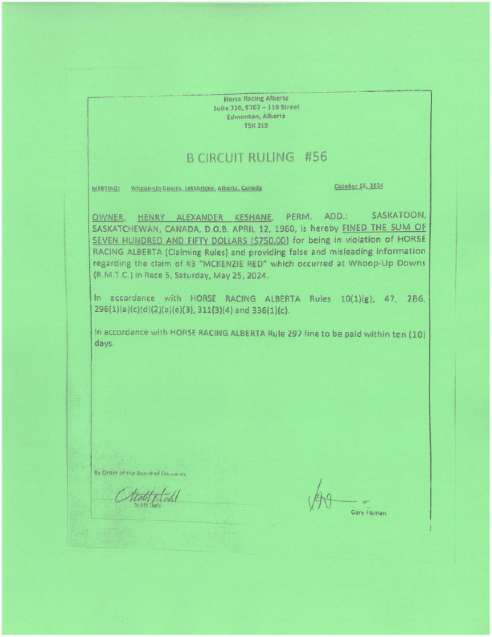 Thoroughbred Rulings Archive