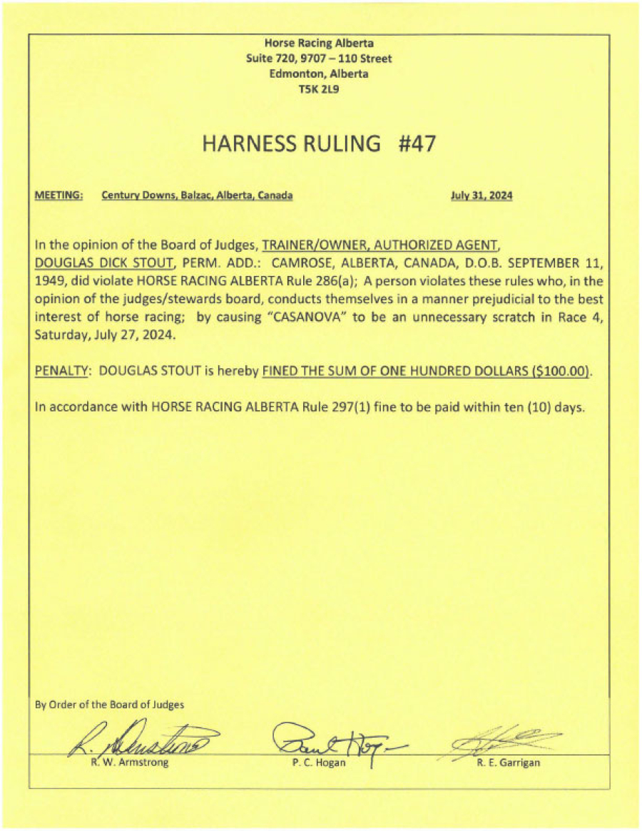 Conduct prejudicial to horse racing, cause unnecessary scratch