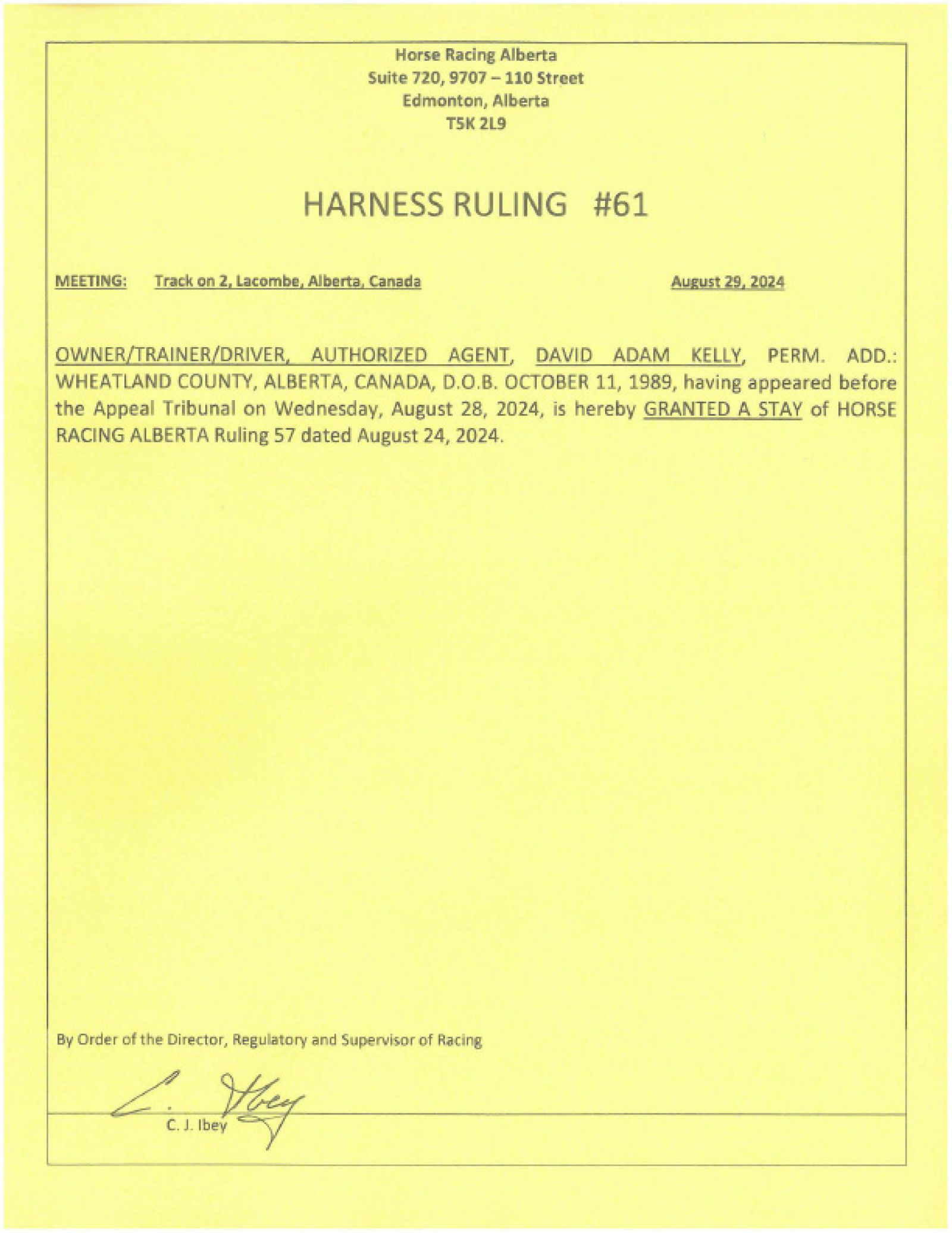 Appeared before tribunal, Re: Ruling H057-2024