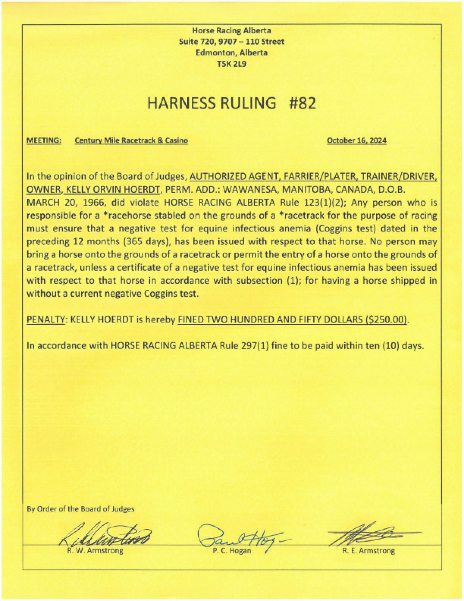 Thoroughbred Rulings Archive