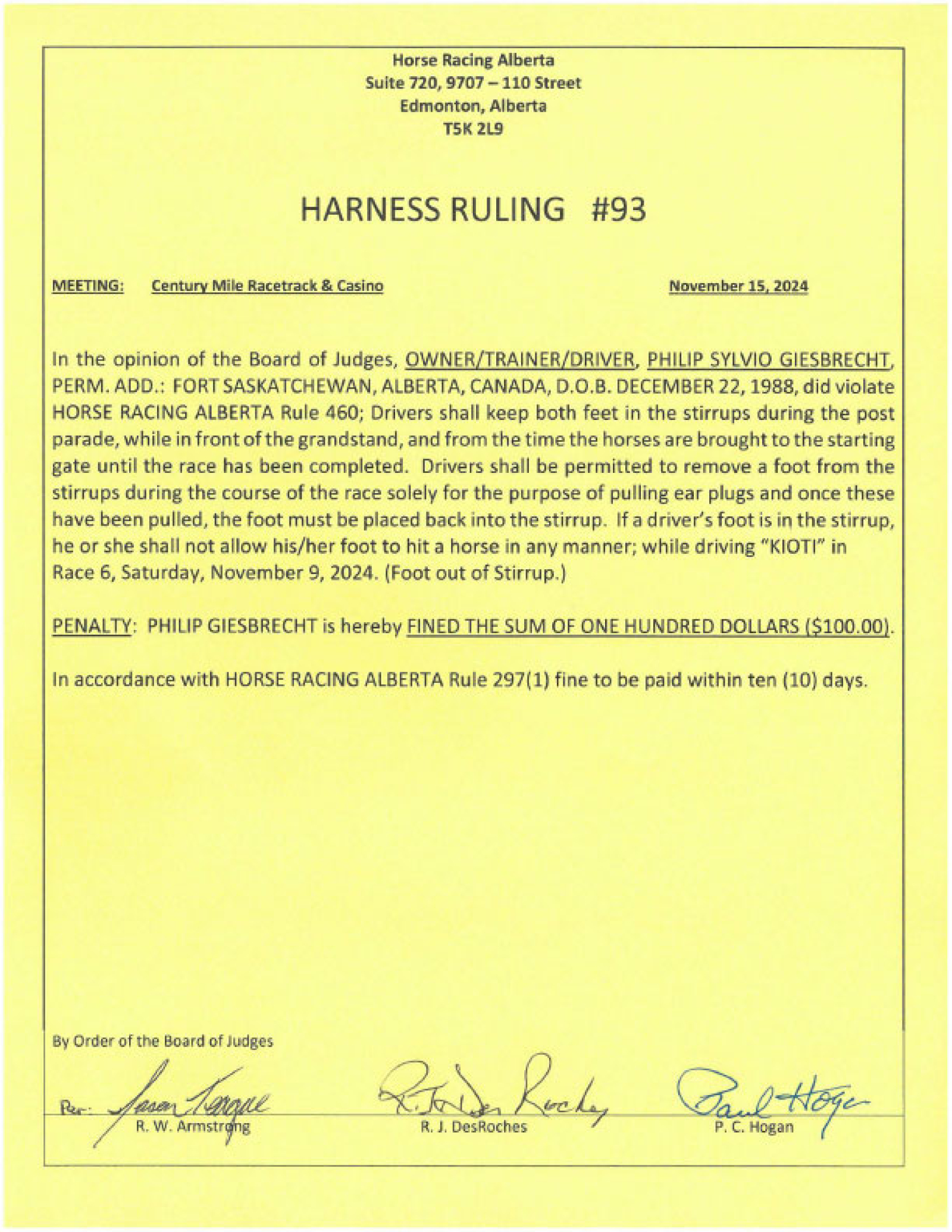 Fined $100