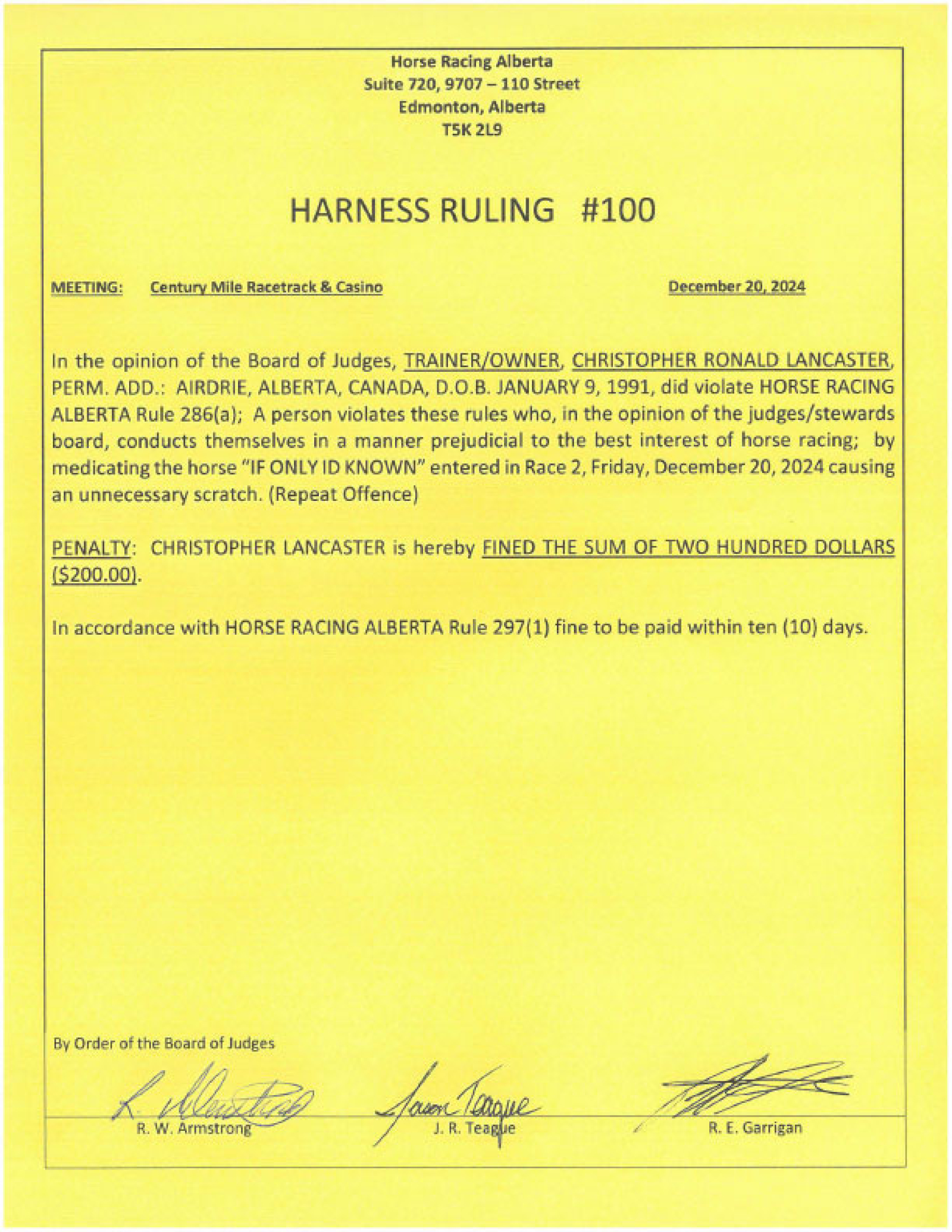 Conduct prejudicial to horse racing, medicating a horse programmed to race
