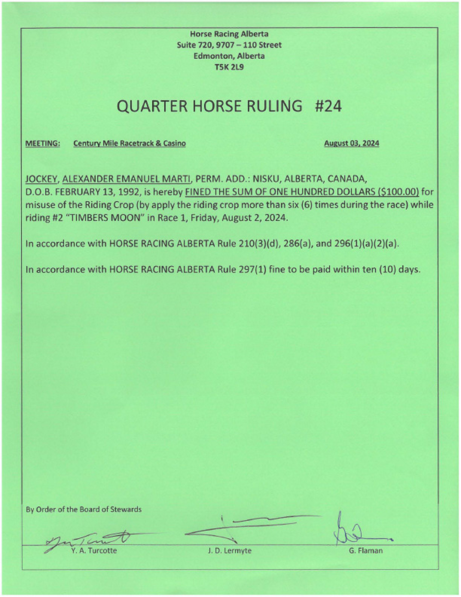 2024 Quarterhorse Rulings
