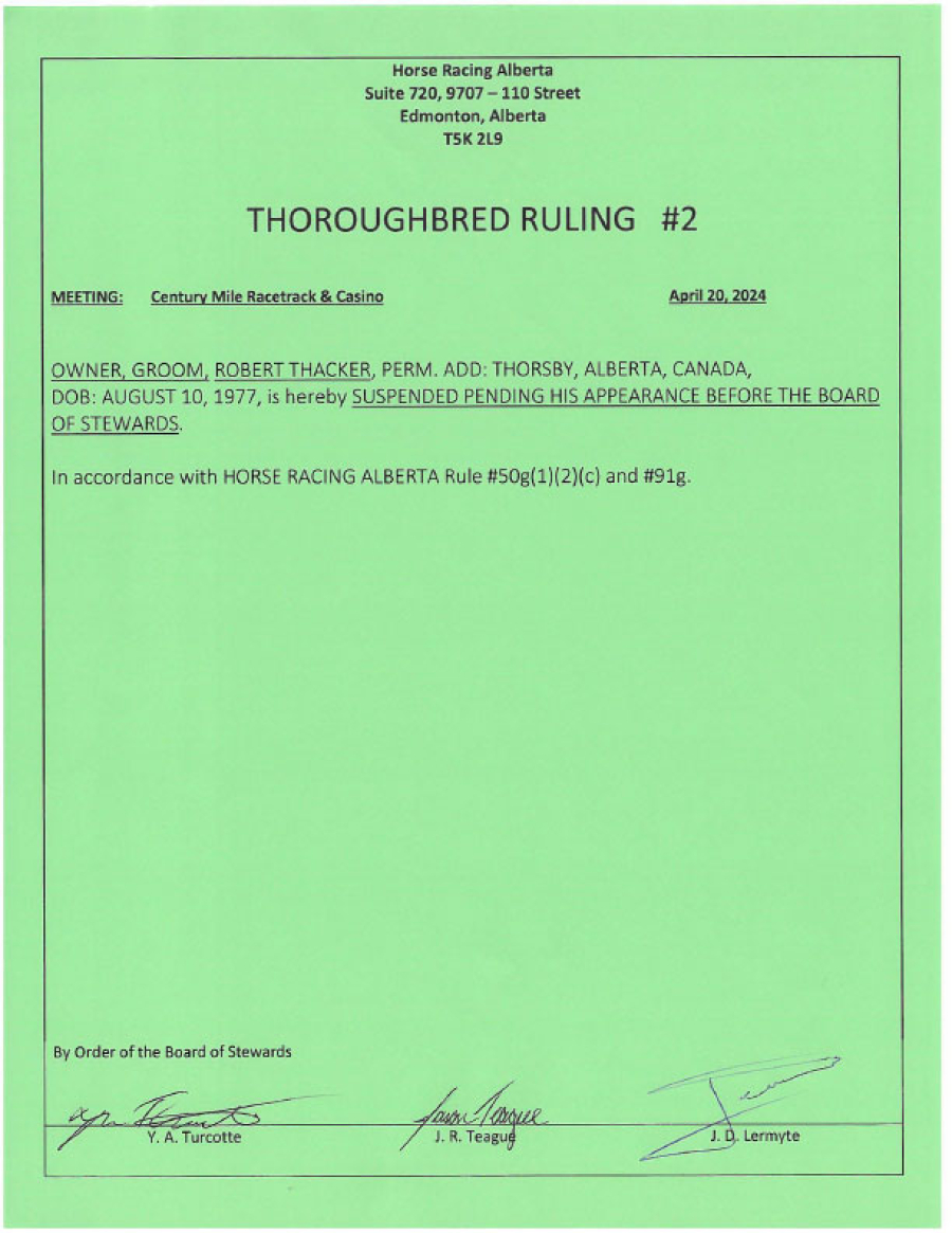 Suspended pending appearance before the board of stewards