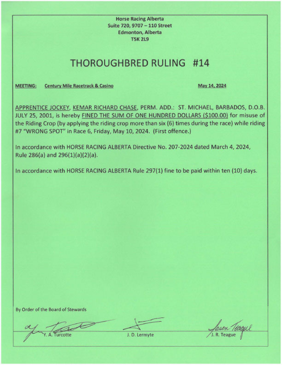 2024 Thoroughbred Rulings