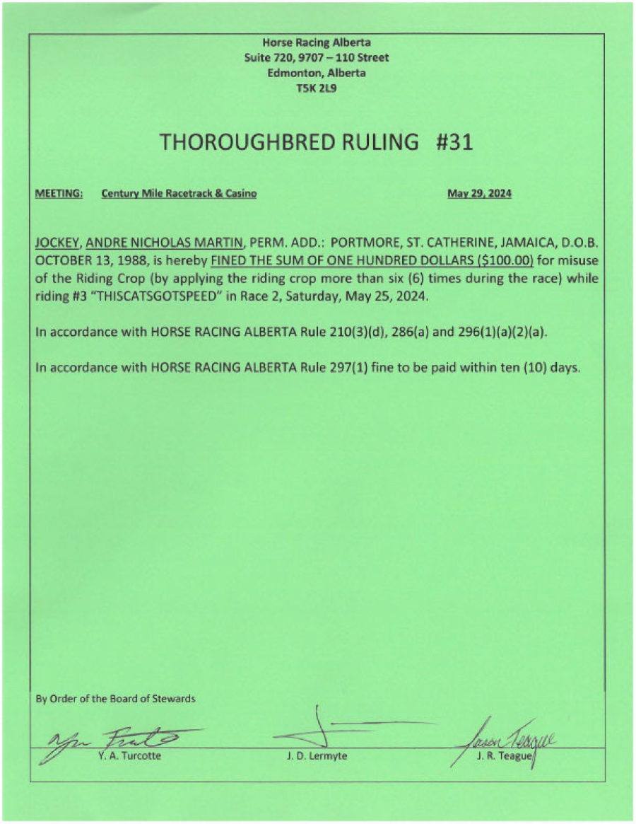 2024 Thoroughbred Rulings