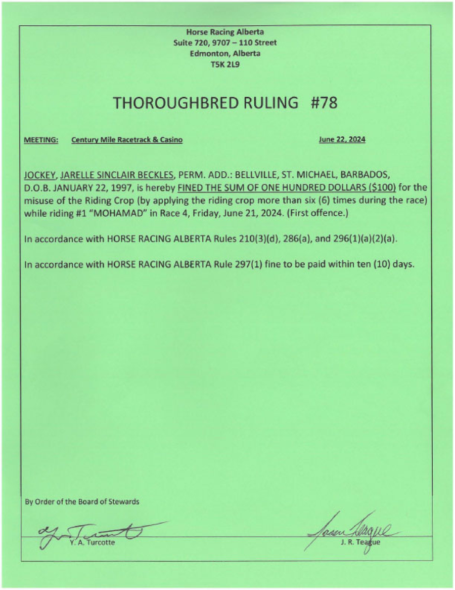 2024 Thoroughbred Rulings