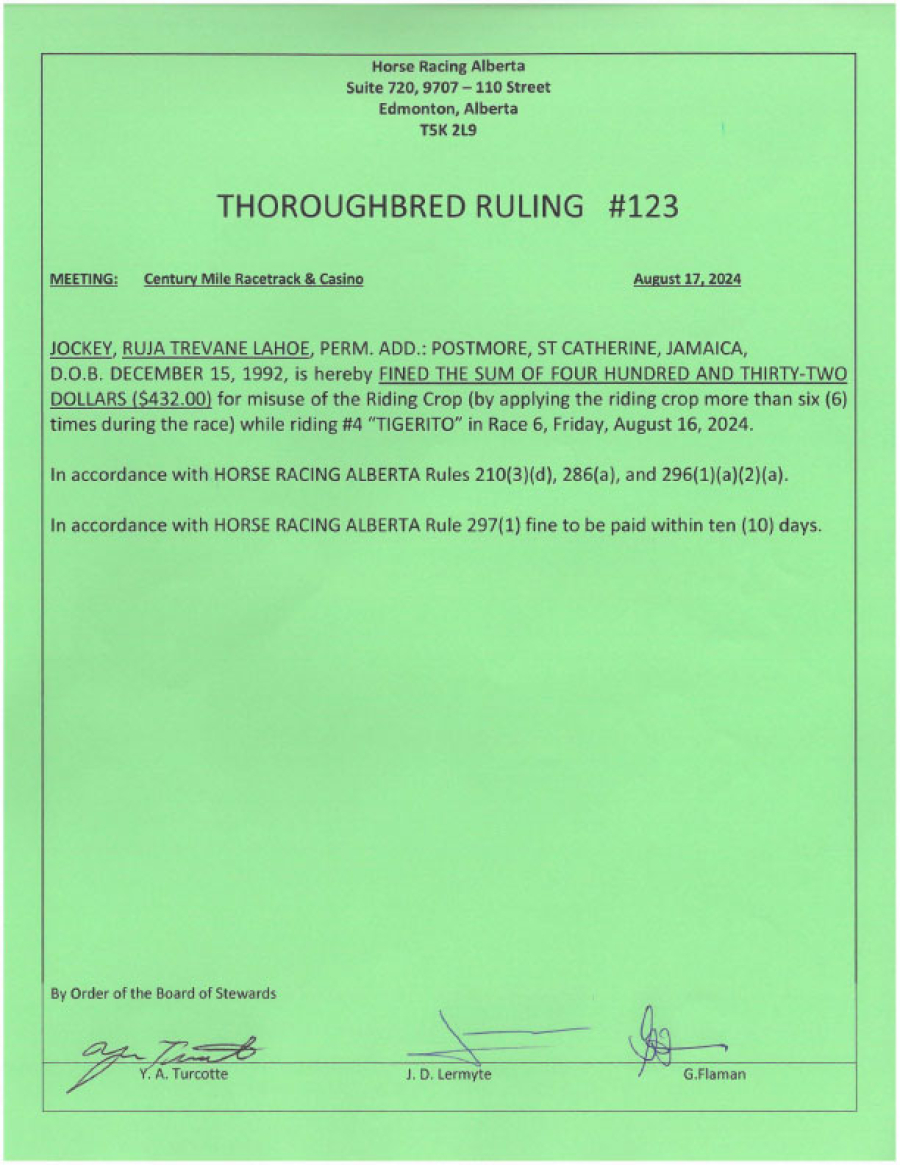 2024 Thoroughbred Rulings