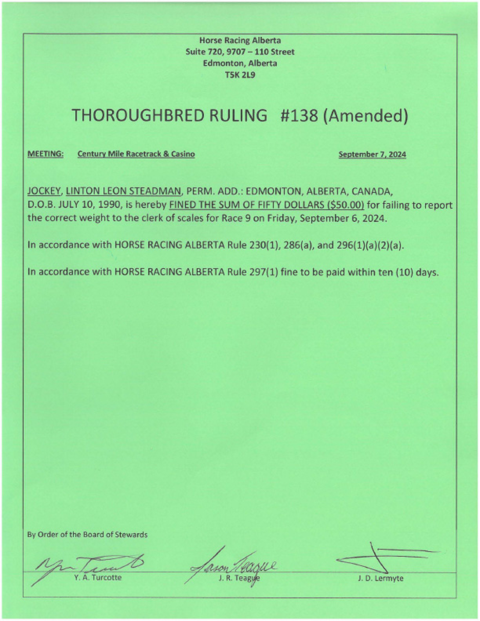 Thoroughbred Rulings Archive