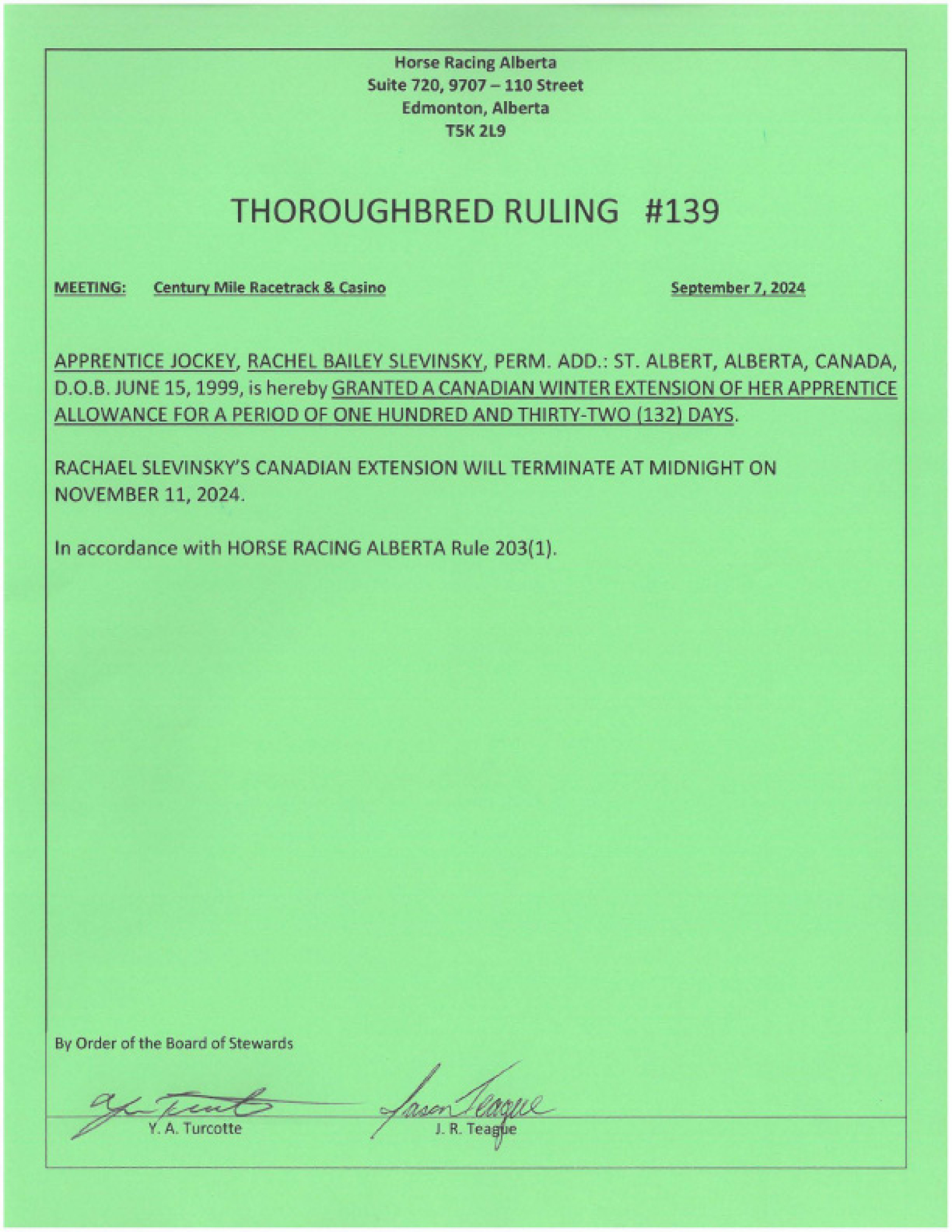 2024 Thoroughbred Rulings