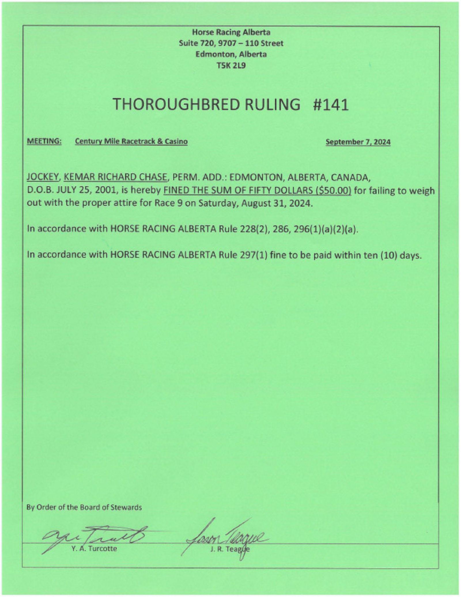 Thoroughbred Rulings Archive