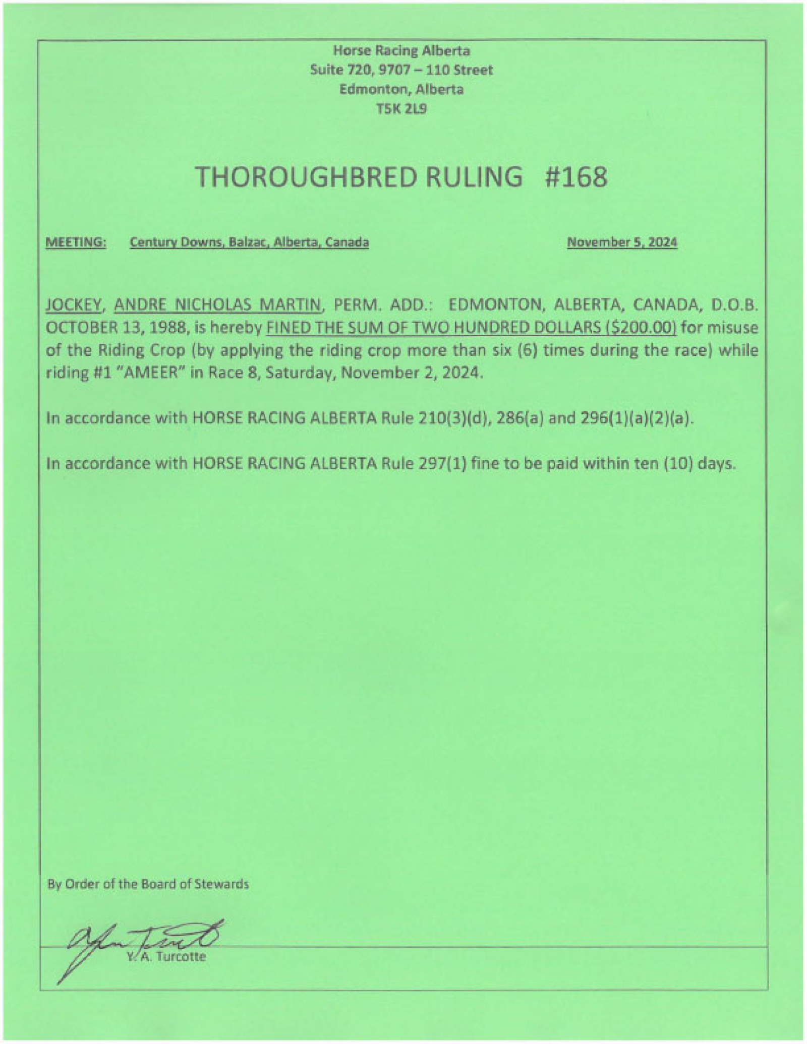 Fined $200