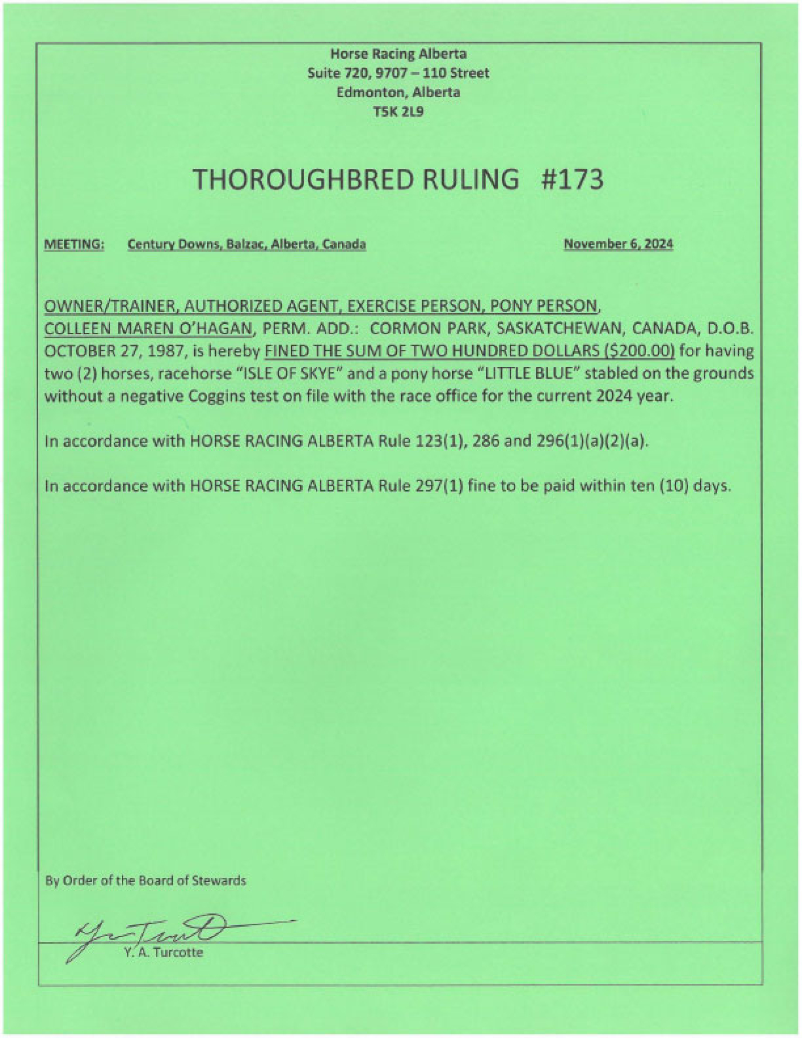 Thoroughbred Rulings Archive
